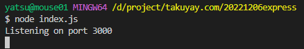 本家サイト(express.js)のチュートリアルを参考に、express.jsでHellor Worldを表示します。