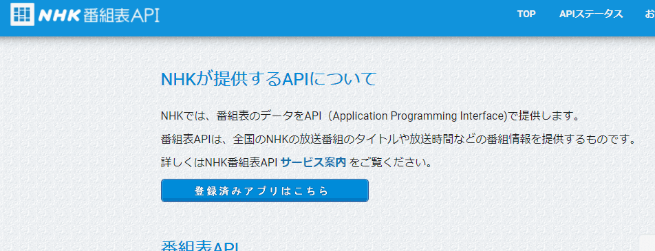 今回は、NHK番組表APIの「Program List API (Ver.2)」を利用します。