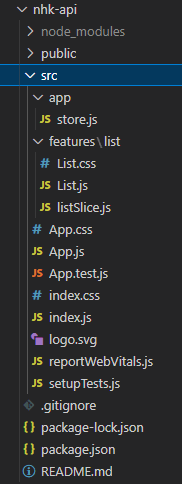 さらにその下に、List.jsとlistSlice.jsというファイルを作成します。