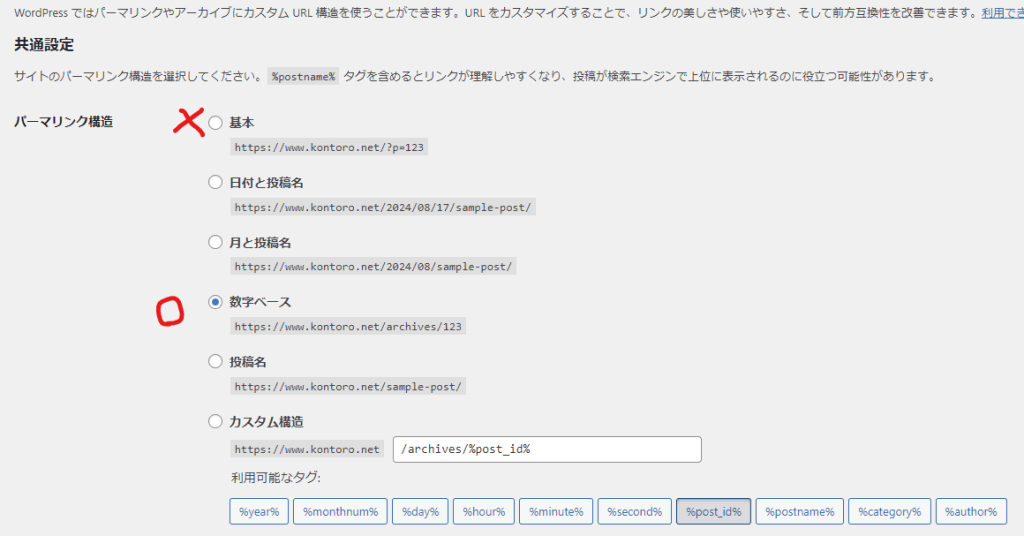 (WP管理画面>設定>パーマリンク)