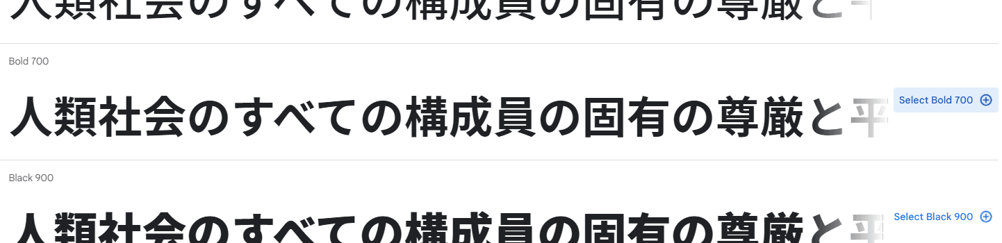 Noto Sansのページに行って、Bold 700を選択(Select)します。