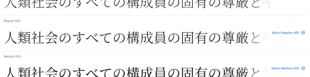 次は、Noto Serifのページに行って、Regular 400を選択(Select)します。