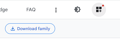 そうしたら、Google Fontsの右上の四角が3つとプラスマークがあるアイコンを押します。